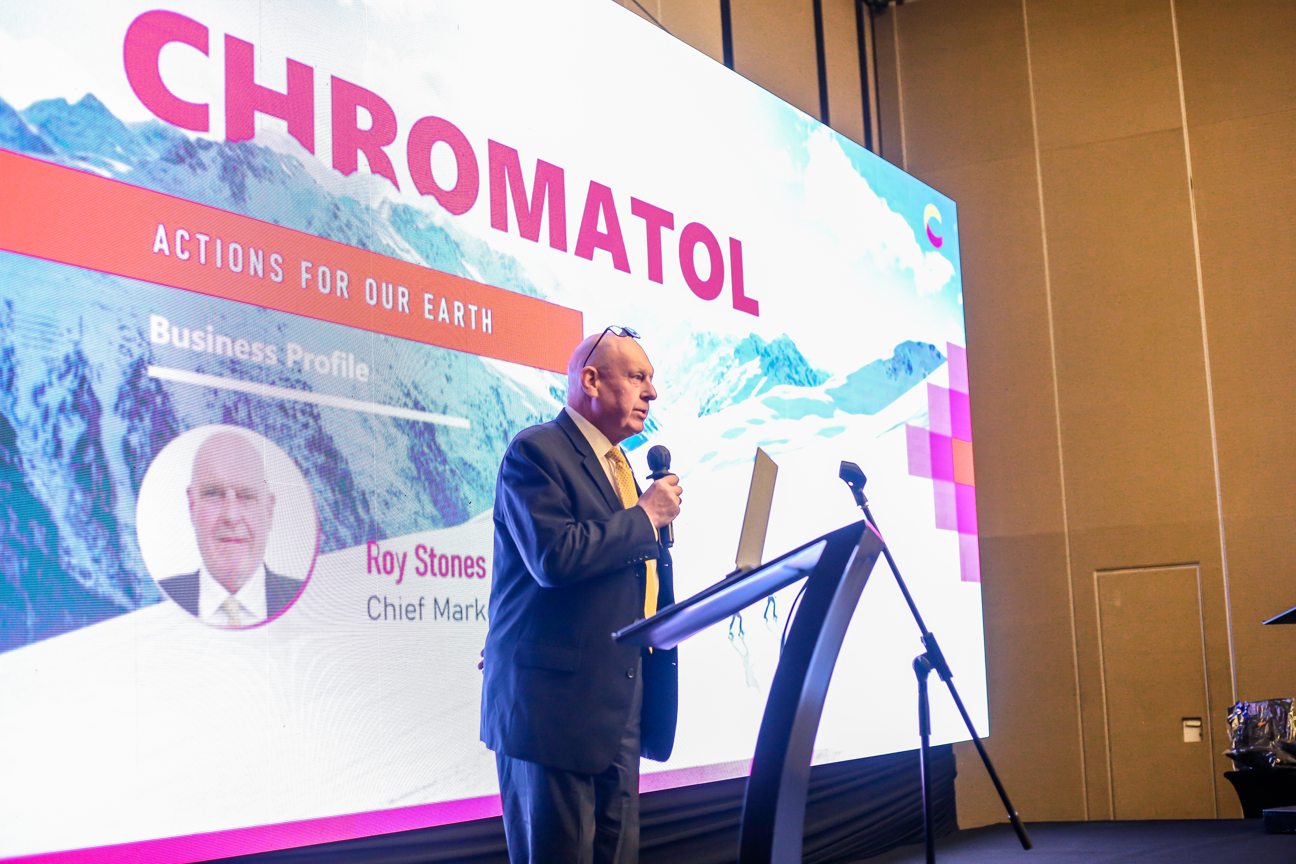 Then, Mr. Roy Stones, Marketing Director of CHROMATOL, introduced Colorsol products to all the customers.