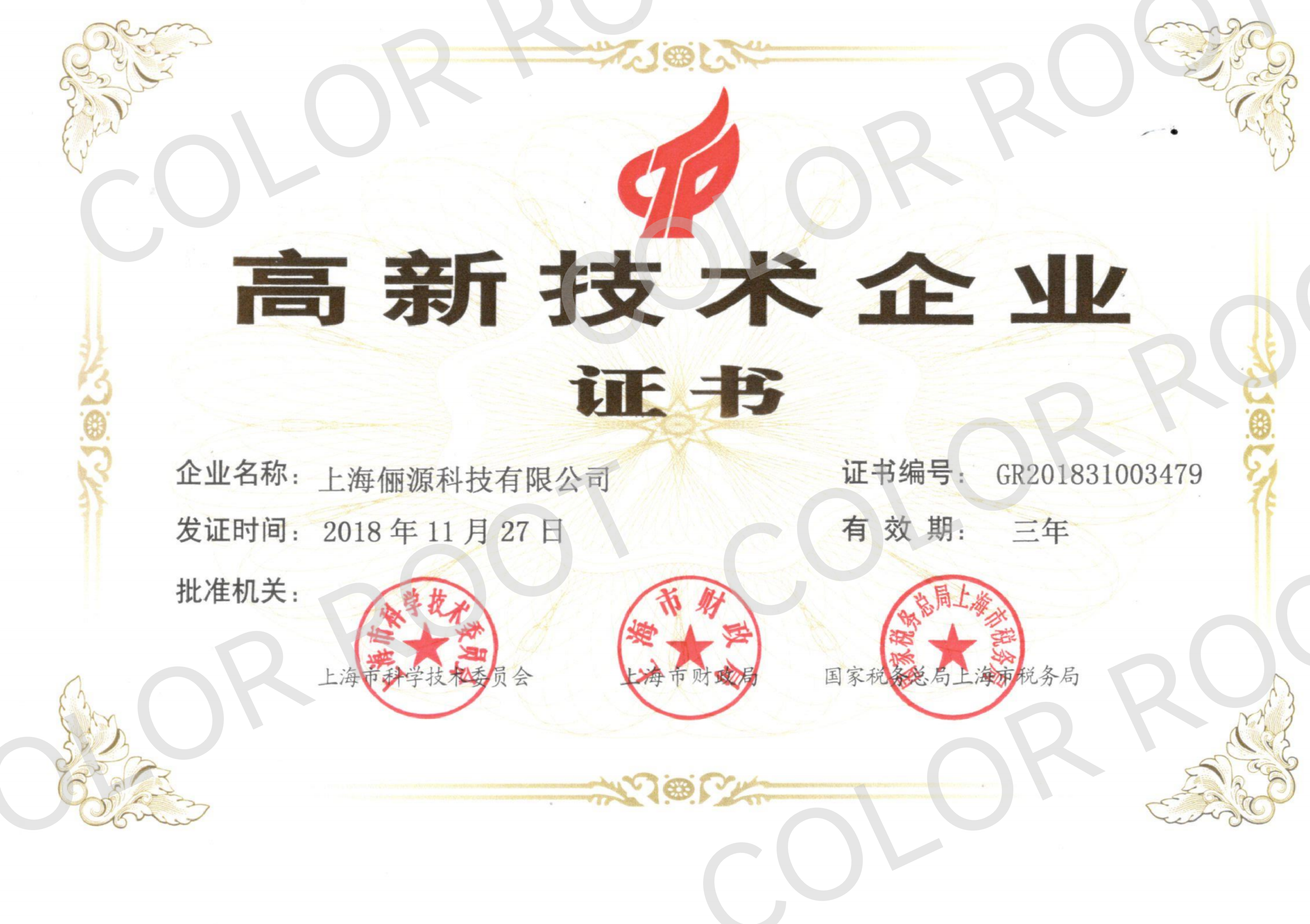 2018年11月,上海儷源初次被認(rèn)定為「高新技術(shù)企業(yè)」