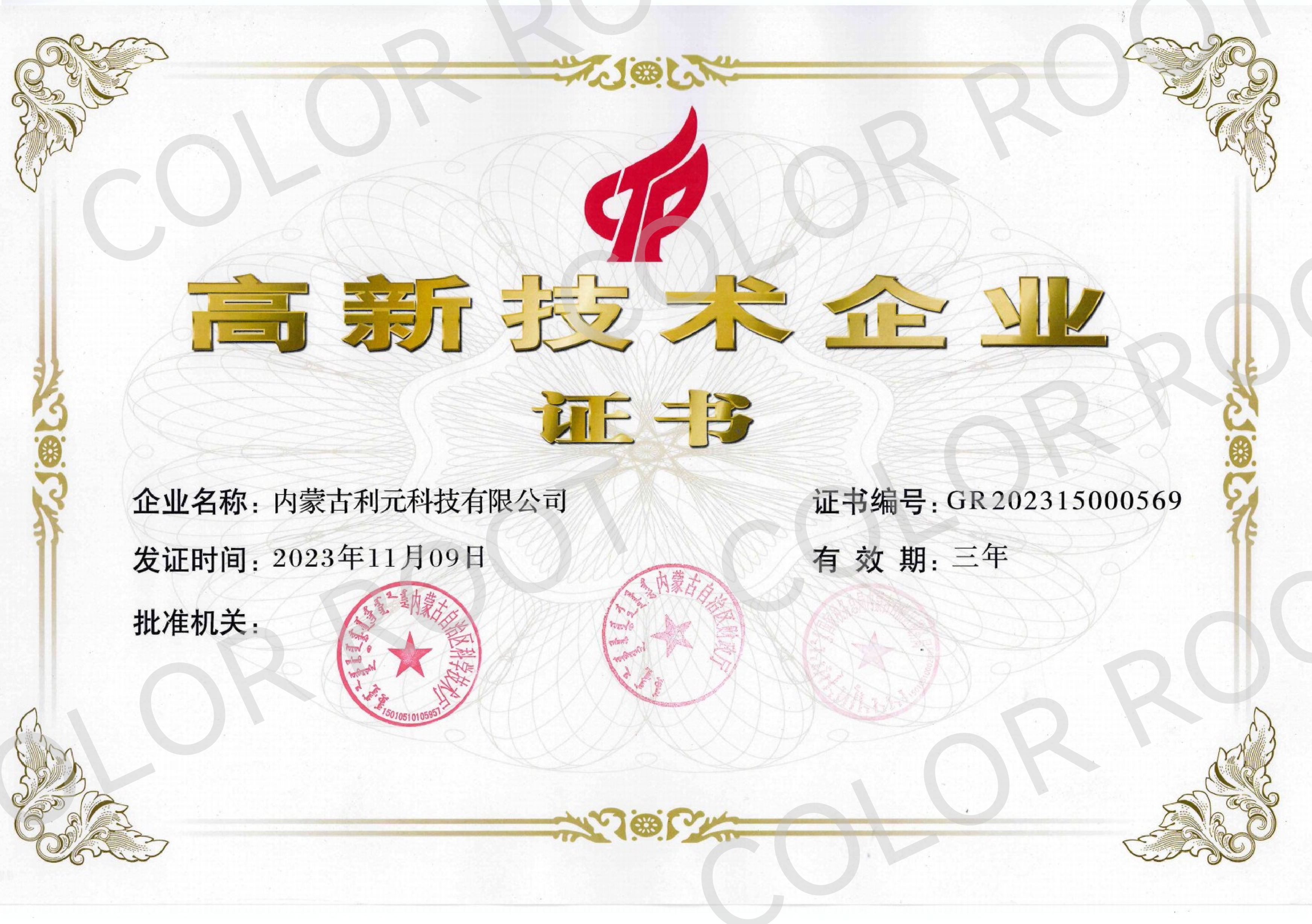 2017年12月,內(nèi)蒙古利元首次被認(rèn)定為「高新技術(shù)企業(yè)」