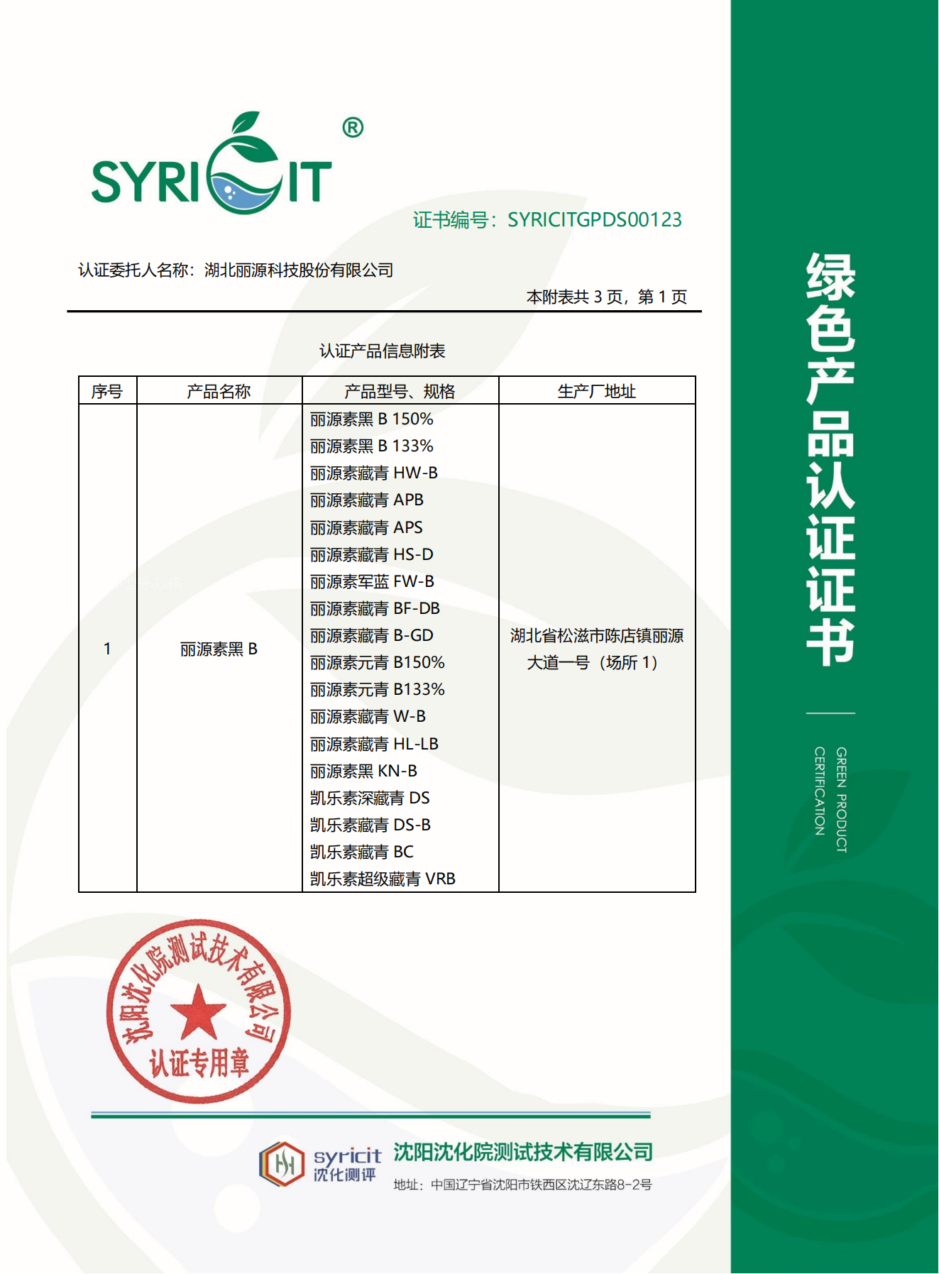 綠色染料產(chǎn)品認證中文